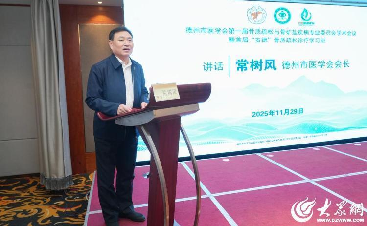 大众网记者 李磊 德州报道11月29日,德州市医学会骨质疏松与骨矿盐疾病专业委员会成立大会暨学术交流会议召开。本次会议旨在凝聚专业共识、提升区域骨质疏松诊疗水平,推动全市骨质疏松防治体系建设,切实守护群众骨骼健康。德州市医学会会长常树风出席会议。